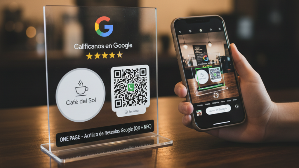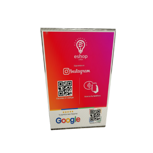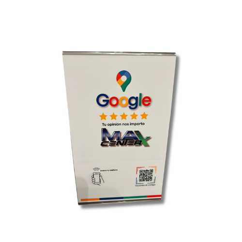 Multiplica tu visibilidad, atrae más clientes y supera a tu competencia con nuestro exclusivo Acrílico de Reseñas Google (QR + NFC) personalizado con tu logo. ¡Es la herramienta definitiva para el crecimiento digital de tu negocio!